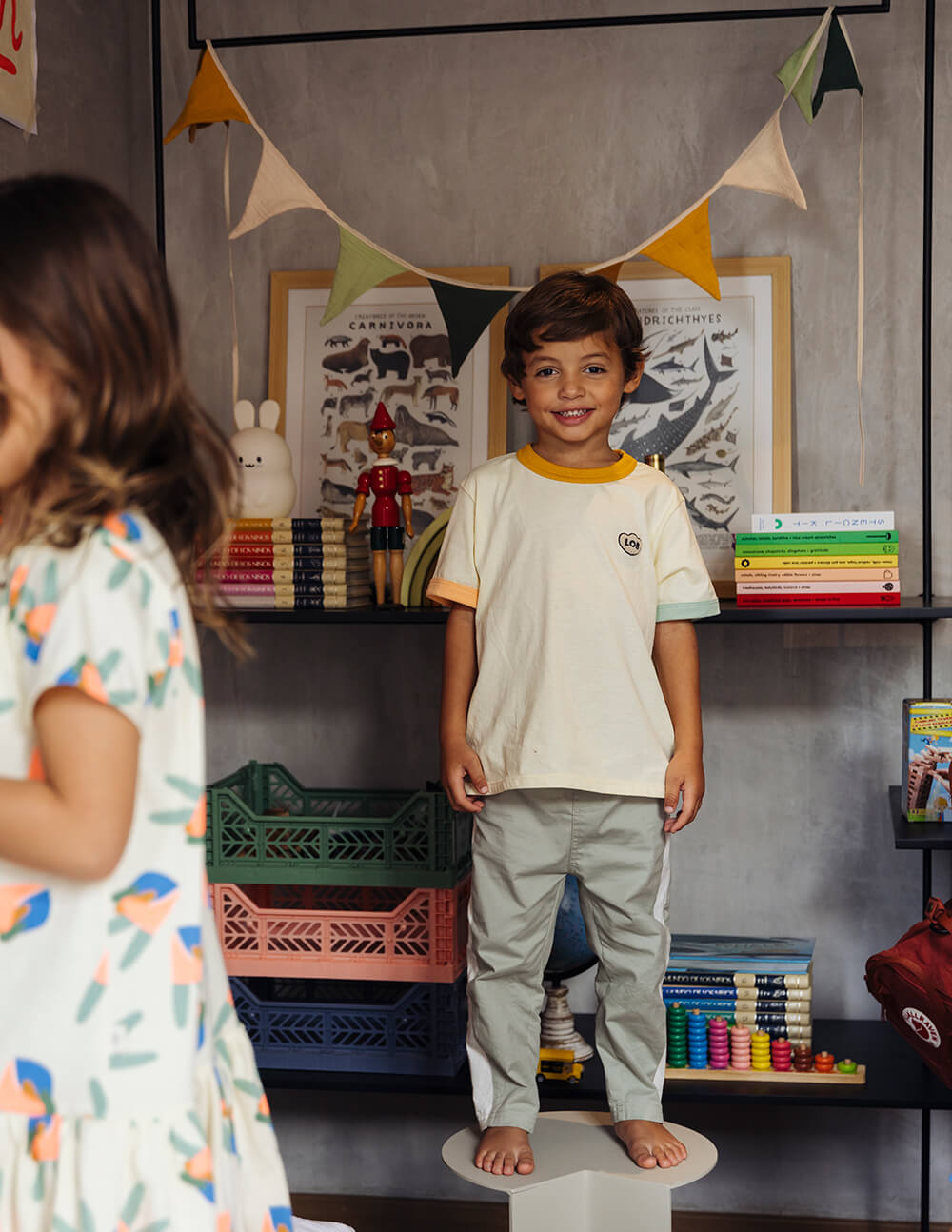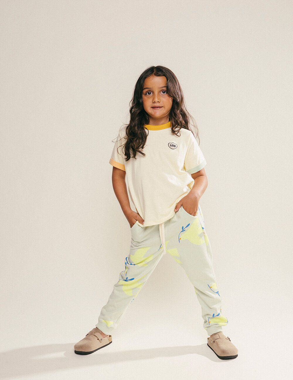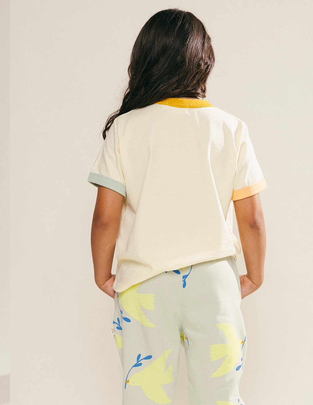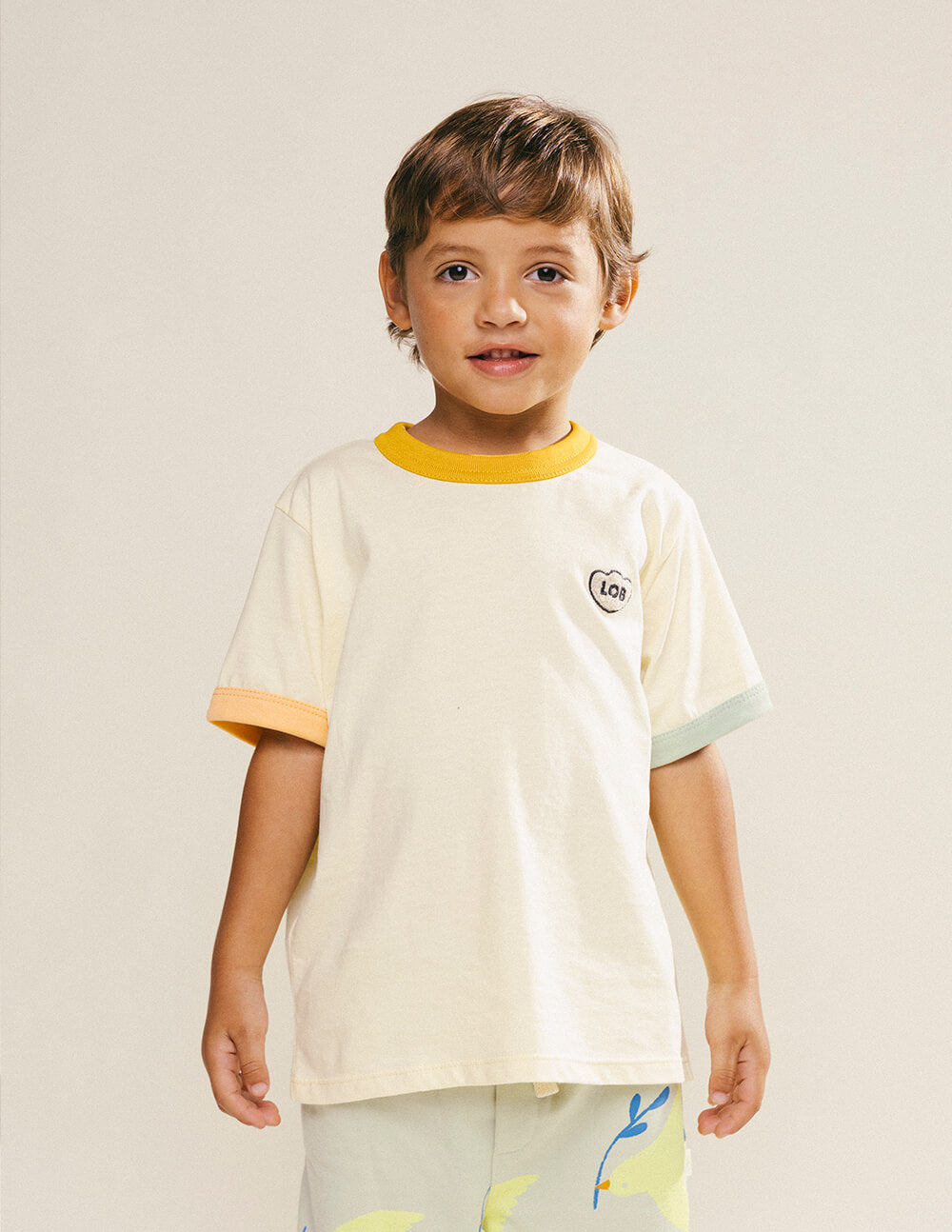 Camiseta infantil, para niñas y niños, con fit suelto, de manga corta, cuello redondo con rib y sesgos de mangas en contaste para dar un look retro. Detalle de "LOB" bordado con textura súper suavecita en el pecho. Un mundo mejor comienza en los corazones de nuestros niños, nuestros seres humanos favoritos. Vistamos su día a día con esperanza, para que con cada paso, siembren paz y cosechen un universo de amor. Por ser una prenda hecha en algodón pima peruano garantiza una frescura y calidad inigualable.