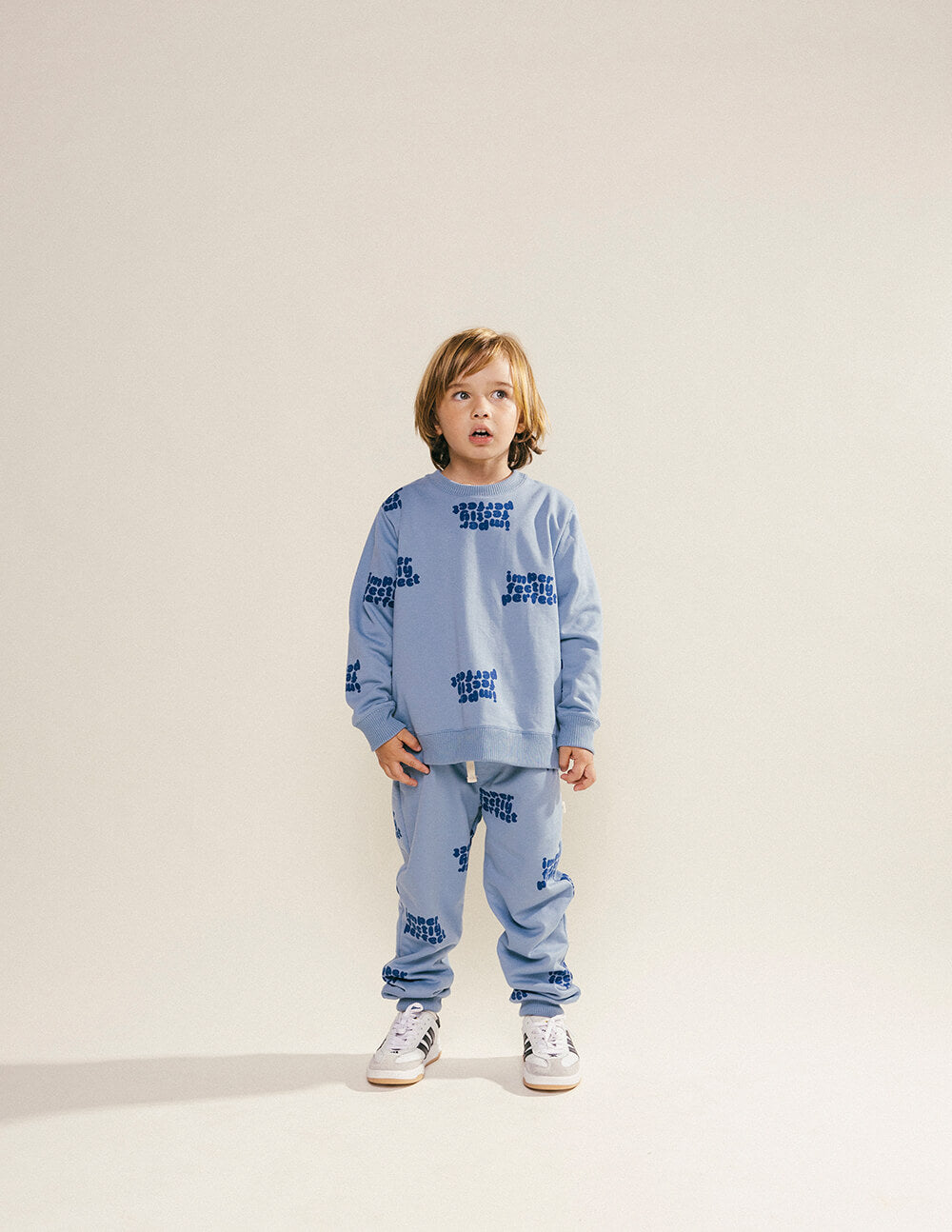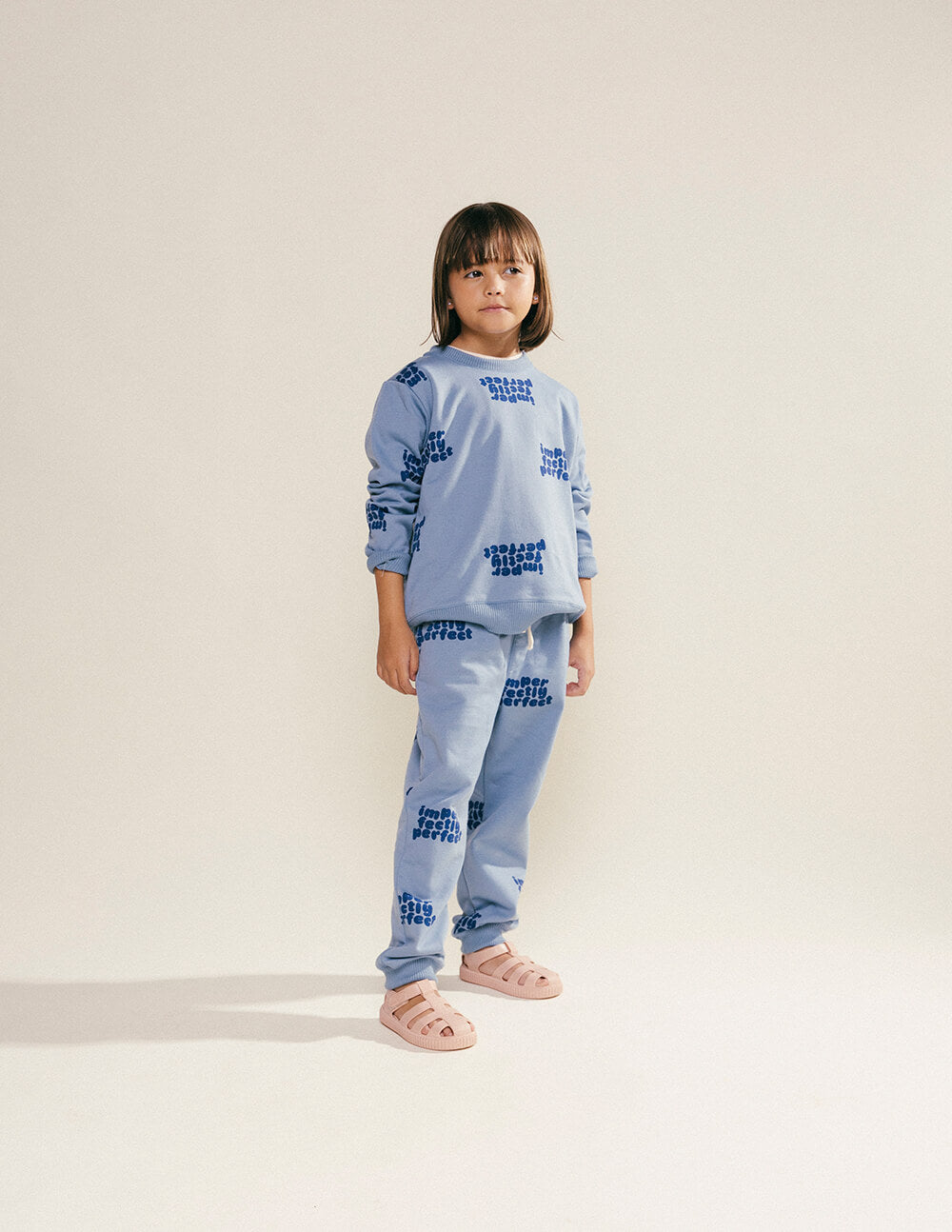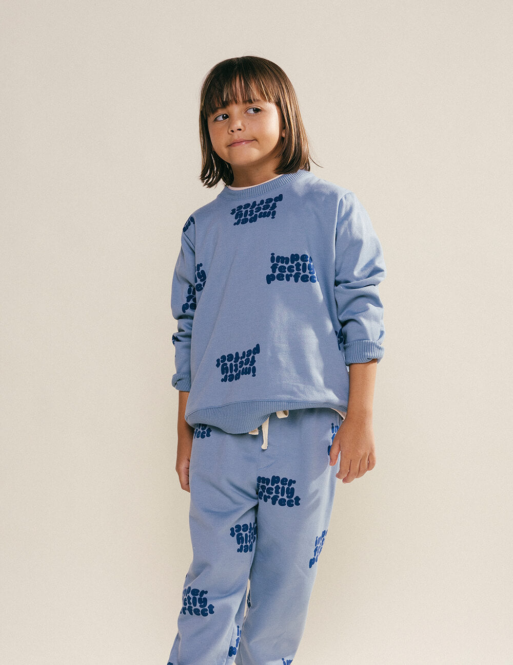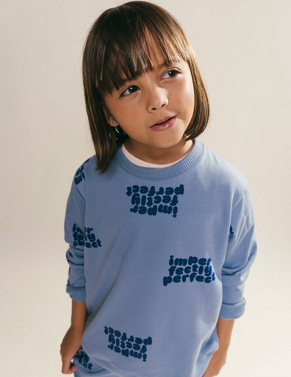 Buzo para niños, unisex, manga larga de cuello redondo. Tela deportiva con interior perchado, es decir, peludita y súper suave para mantener nuestros hijos muy abrigados y cómodos. Estampados con texto "Imperfectly Perfect" azul oscuro sobre azul medio, para recordarles que así como nosotros, estamos llenos de diferencias y defectos que nos hacen diferentes y perfectos. Vistamos su día a día con esperanza, para que con cada paso, siembren paz y cosechen un universo de amor. Perfecto para llevarlo en set con el jogger "Paloma".